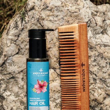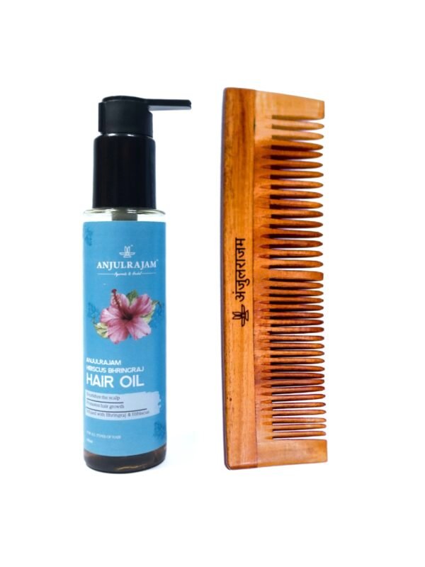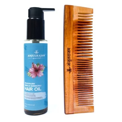 ANJULRAJAM Hibiscus Bhringraj Hair Oil + Neem Wood Comb Combo