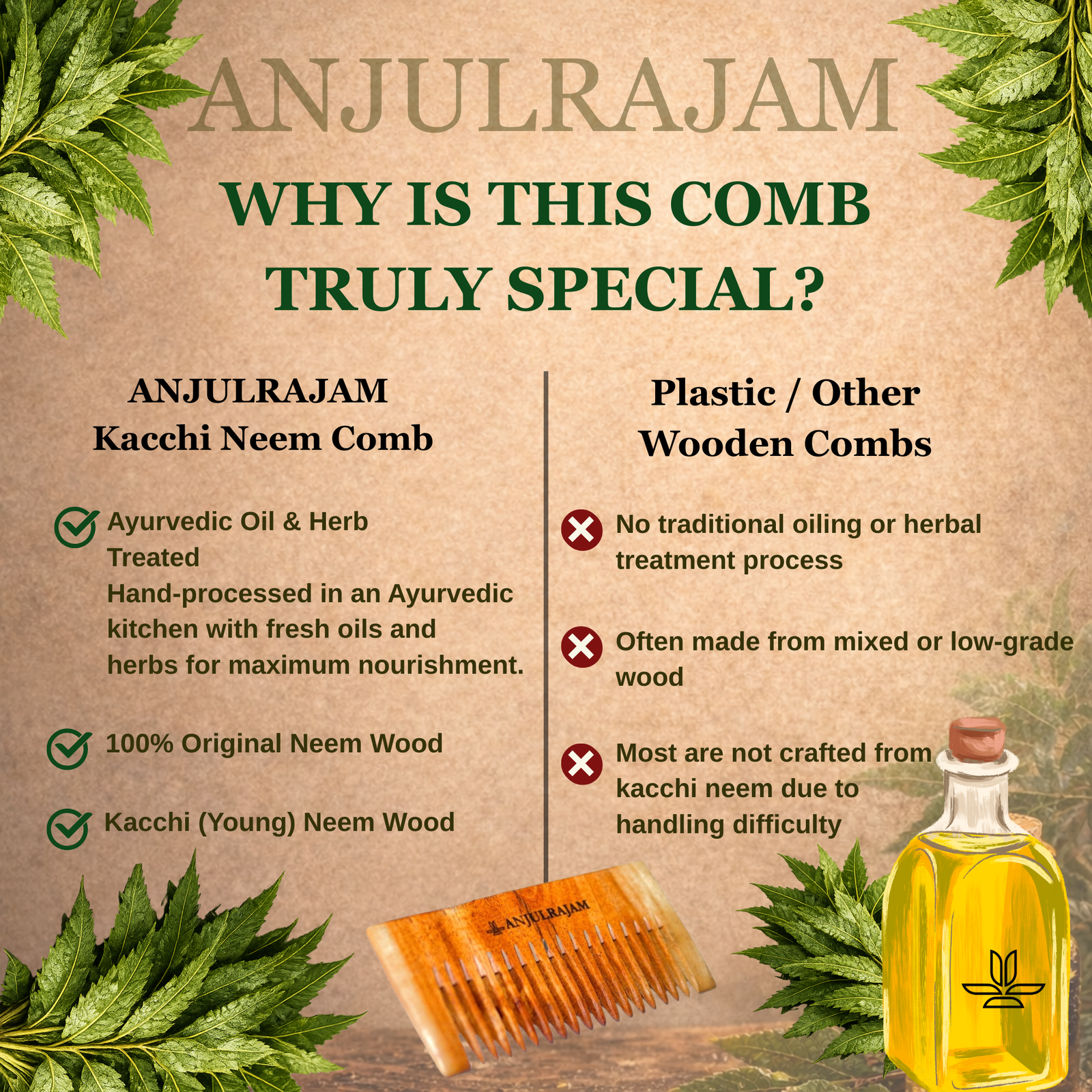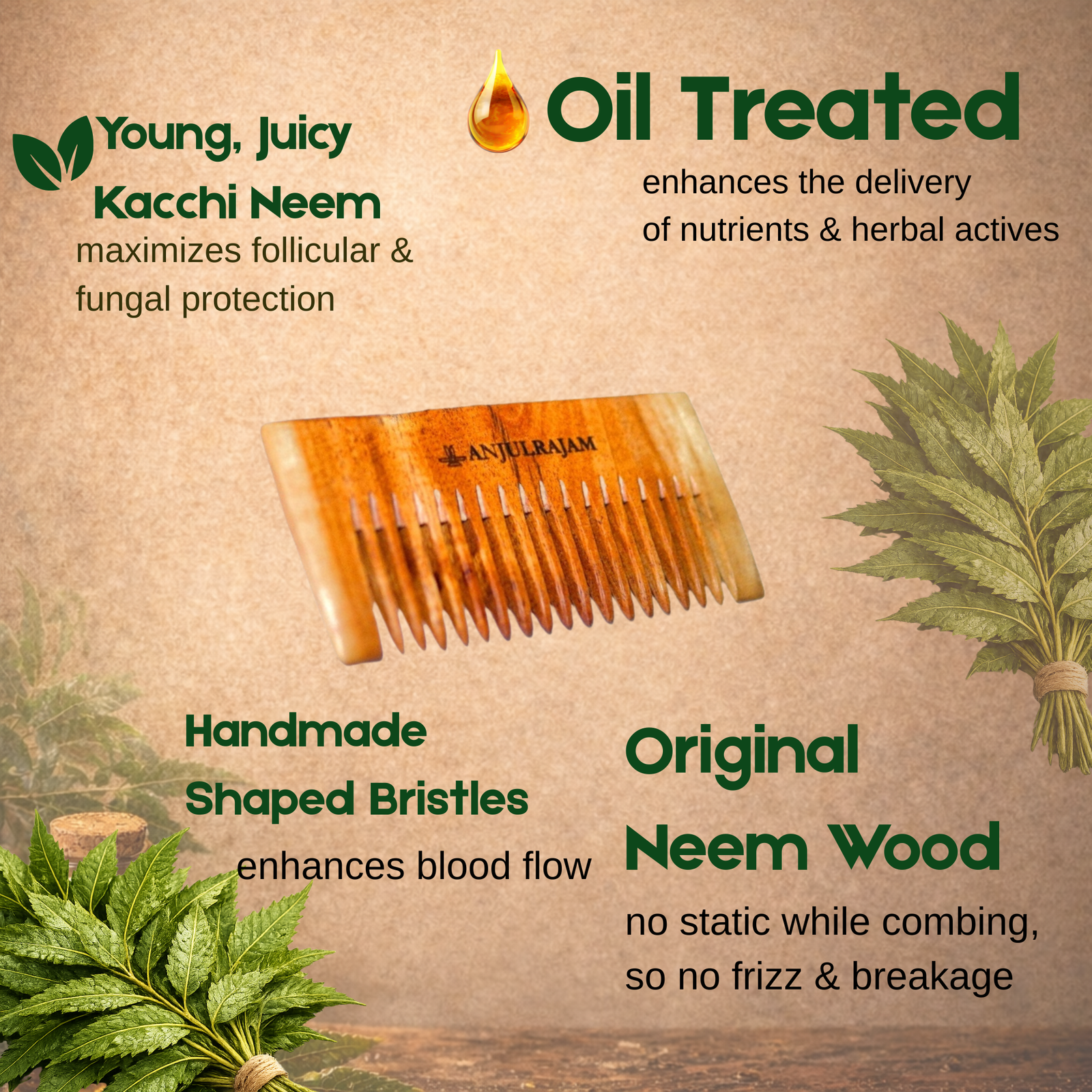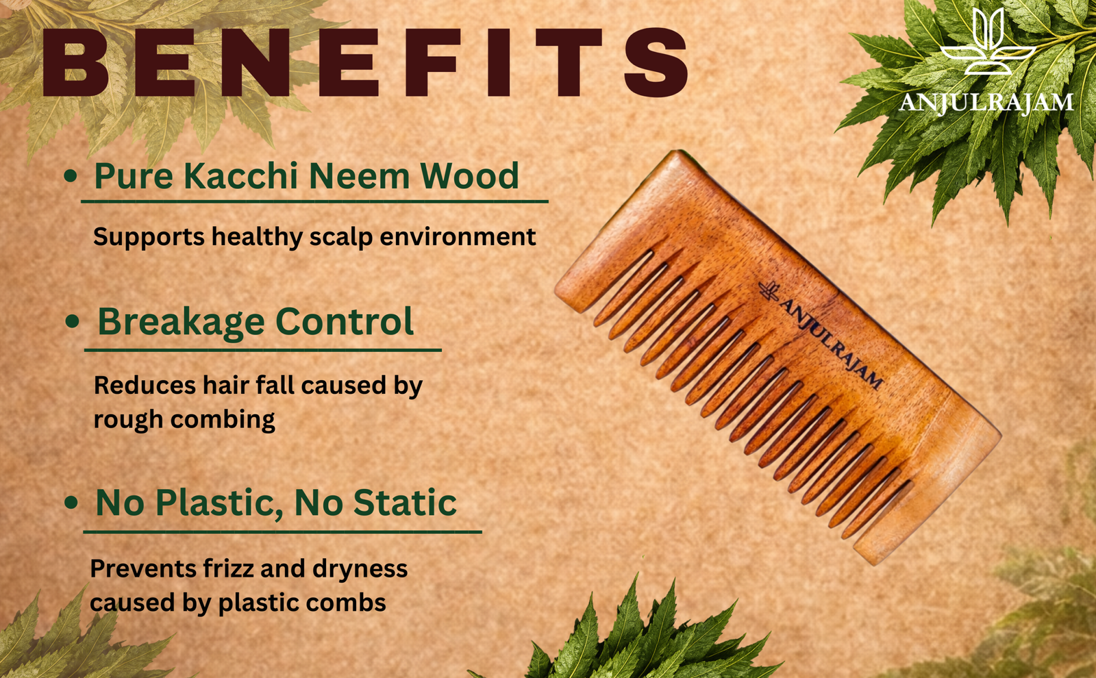 original neem wood shampoo comb | ayurvedic scalp care | improves circulation & controls hair fall | chemical-free